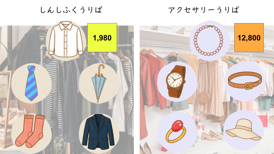 まずは1つのカテゴリー(しんしふくうりば)からスタート。